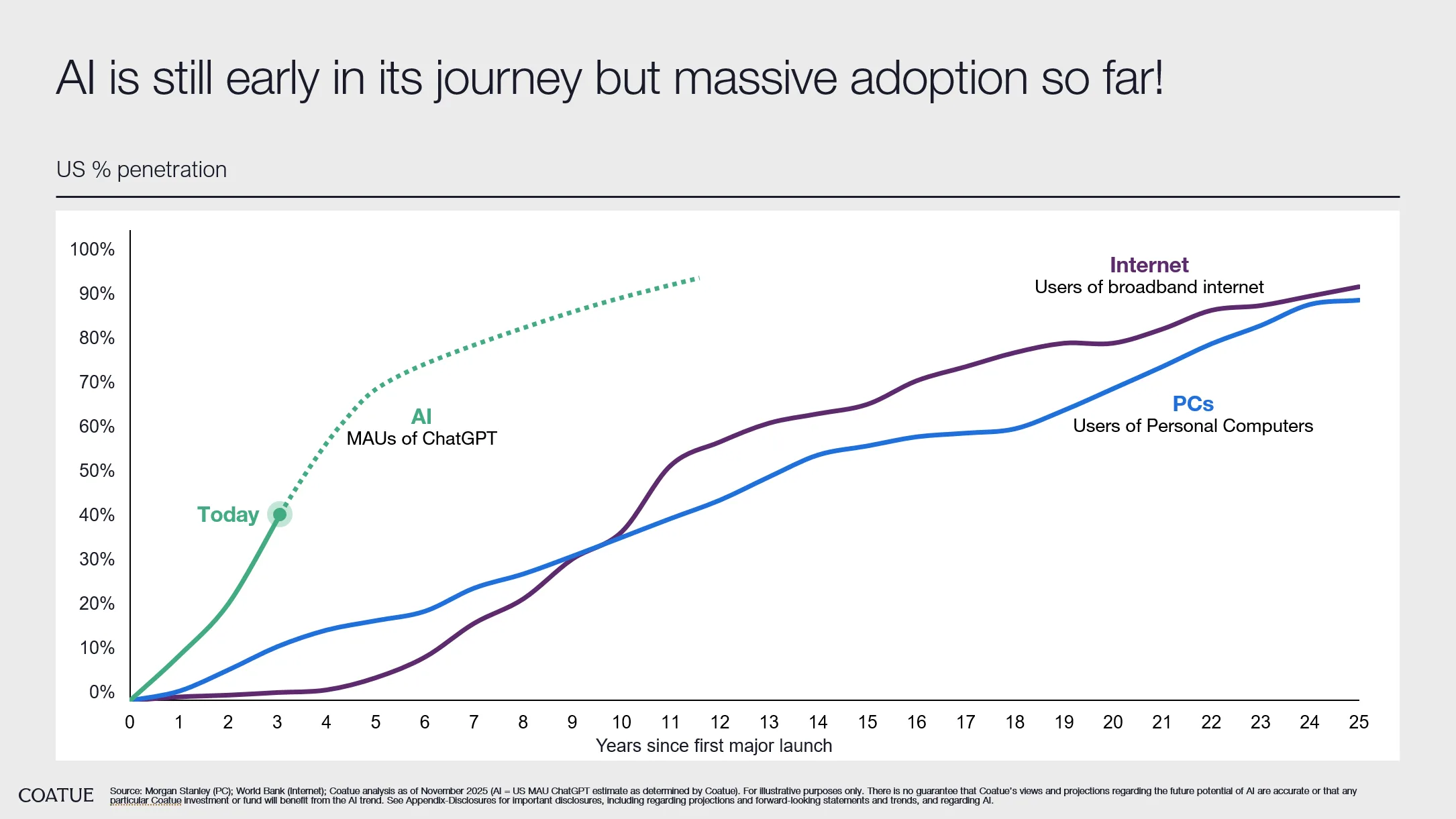 So when we’re asked whether private markets are too expensive, we focus instead on growth and durability. Through that lens, select opportunities with sustained adoption curves can be attractive, even at elevated initial valuations.